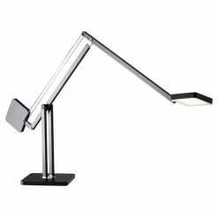 The perfect fluid arm movement has been discovered in the Cooper LED Desk Lamp. Two square shapes of the same size cooperate to create a fluid movement. One is dense and heavy to act as a counterweight, the other one is light and hollow to act as a lamp shade. The counter-balanced lamp construction will not get loose over time since it is based on the force of gravity, and not from friction or a steel spring. 600 lumens of warm, bright light is dimmable by a touch switch on the metal pole. This functional 8 watt LED light adjusts from 14 to 37 inches in height and extends from 22 to 39 inches in depth providing a full range of reach that is also rotatable by the base. Keeping it simple with a solid matte black finish, the design focuses on the lamps unique shape. The style is finished off with a decorative fabric covered cord.
