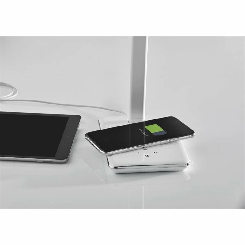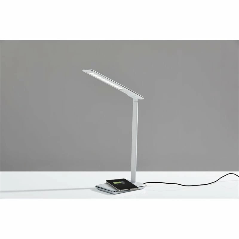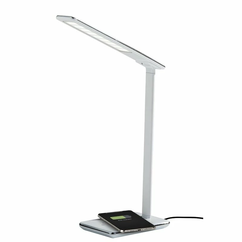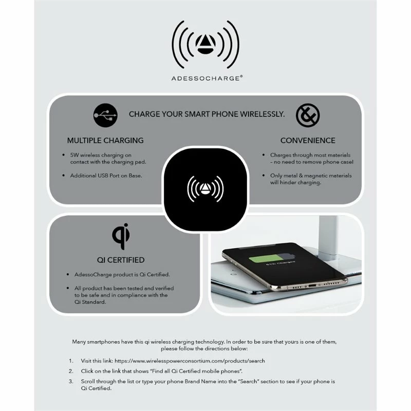 Take your home office to the next level with the Declan LED Wireless Charging Multi-Function desk lamp! With 800 lumens of customizable, flicker free, high powered light, this lamp wil suit all of your needs at every time of the day. A sleek touch switch on the base adjusts the light between 3 different color tempertature modes and 5 different brightness settings. Whether you need a warm, dim night light for reading before bed or bright, white light to wake you up while you work during the day, this lamp has you covered! A sophisticated glossy white finish will add a modern touch to your home or office. In addition, a Qi certified wireless charging pad is conveniently located inside of the base. Many smartphones (list below) have Qi technology built in, so just place your phone on the pad and it will charge right up. No cords, no mess. It’s that easy! All AdessoCharge product is Qi certified by the Wireless Power Consortium. Please visit https://www.wirelesspowerconsortium.com/products/search/ to see a list of Qi certified products. Our product has been tested and verified to be safe and in compliance with the Qi standard. The AdessoCharge pad supports 5W charging on contact with the charging pad, which gets your phone from 0% to 100% in just 3-4 hours, depending on your phone model. A USB is located on the base and can charge up a second device simultaneously. The LED’s are integrated into this lamp and are not replaceable. However, Adesso LED’s are top quality and last around 50,000 hours!