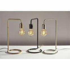 A mix of vintage and industrial styling, the Morgan Desk Lamp makes a statement wherever you place it. A thin metal tube creates the entire body of the lamp and flows continuously into a black & white fabric covered cord that pops perfectly against the antique brass finish . An amber tinted vintage edison bulb, which is included with the item, provides warm, decorative light. A simple on/off switch is located conveniently on the cord.