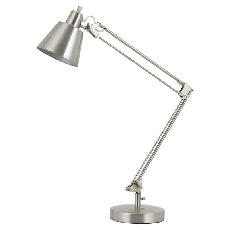 Durable constructed metal desk lamp. Featured in a brushed steel.