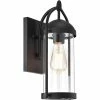 Clarke, a transitional style outdoor wall sconce, is traditionally designed and gorgeous. This sconce features a beautiful, clear, bell shaped glass, encapsulating a sleek vintage edison bulb. The steel frame is in a textured black finsh. The fixture takes one 100W E26 bulb and is compatible with incandescent, flourescent, and LED bulbs. Also, the open shade make light bulb changes a breeze. All of our outdoor wall sconces are UL listed, and dry, damp and wet listed, to survive all weather conditions, hot and cold. Also, this sconce is recommended for both residential and non-residential use!