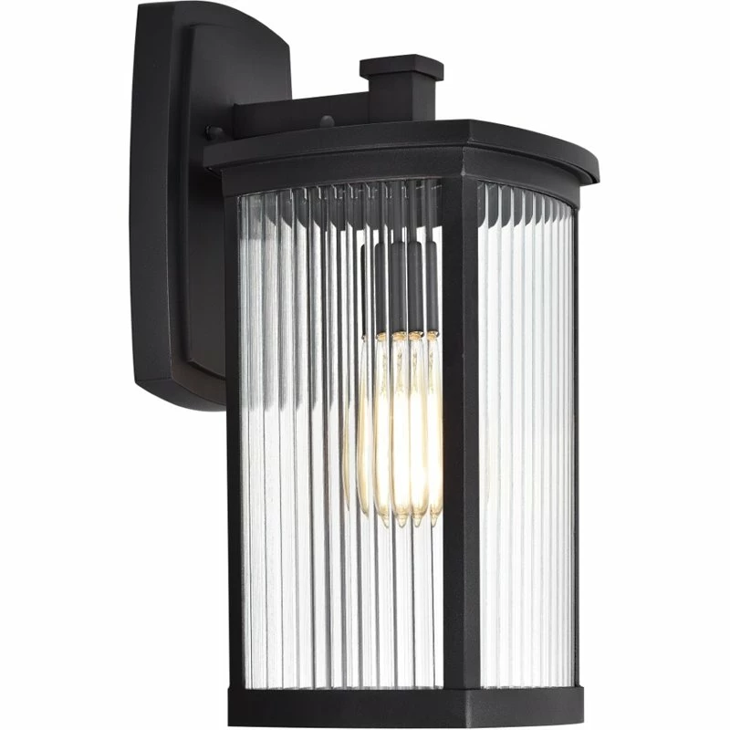 Evie is a chic, transitional style outdoor wall sconce, and it is calling your name! This sconce features a beautiful, rectangle ribbed glass, encapsulating a sleek vintage edison bulb. The aluminum frame is in a textured black finsh. The fixture takes one 100W E26 bulb and is compatible with incandescent, flourescent, and LED bulbs. Also, the open shade make light bulb changes a breeze. All of our outdoor wall sconces are UL listed, and dry, damp and wet listed, to survive all weather conditions, hot and cold. Also, this sconce is recommended for both residential and non-residential use!