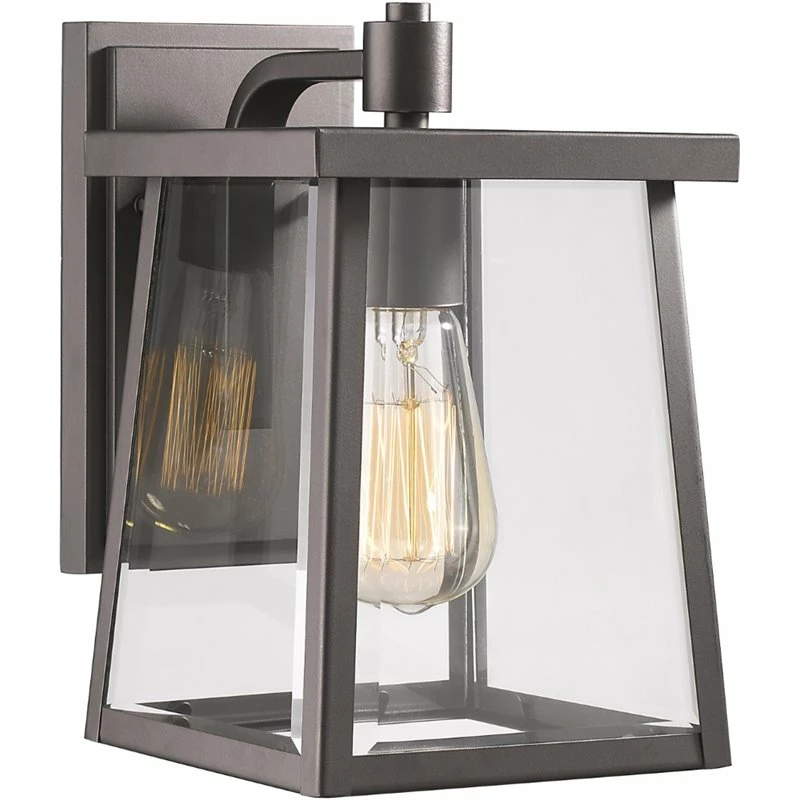 This 1-light outdoor wall sconce features an oil rubbed bronze finish that will complement many transitional decors. The clean lines of the steel frame adds interest while the clear glass panels provide uninterrupted light for your outdoor decor.