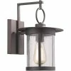 This transitional 1-light outdoor wall light features a oil rubbed bonze finish that will compliment many outdoor decors. The clear seedy glass adds interest to the look and the open bottom makes changing bulbs easy.
