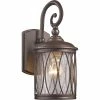 This transitional 1-light outdoor wall light features a rubbed bronze finish that will compliment many outdoor decors. The clear seedy glass adds interest to the look and the open bottom makes changing bulbs easy. Steel construction.