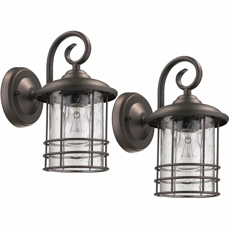This transitional 1-light outdoor wall light features a rubbed bronze finish that will compliment many outdoor decors. The clear seedy glass adds interest to the look and the open bottom makes changing bulbs easy.
