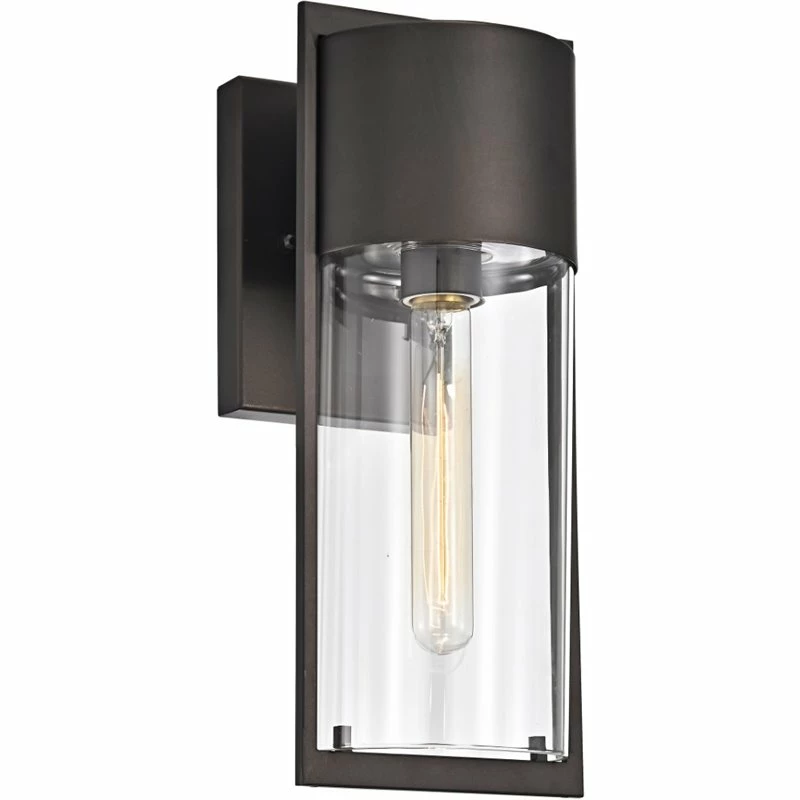 This sleek, transitional style out door wall sconce is calling your name! This sconce features a beautiful, crystal clear glass cylinder encapsulating a sleek vintage edison bulb. The steel frame is in a rubbed bronze finsh. The fixture takes one 100W bulb, and a vintage bulb is included in the box. Compatible with incandescent, flourescent, and LED bulbs with an E26 base. All of our wall sconces are UL listed, and dry, damp and wet listed, to survive all weather conditions, hot and cold.