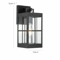 Amara Transitional features multi-paned detailing and clear glass, which adds character with its rippled effect. Black metal finishes with clear glass that fits in perfectly with the frame. Clean black lines of the metal frame house the antique illuminate beautifully. Finished in a matte black powder coat providing durability in harsh/coastal environments to protect against corrosion and rust that can occur due to the elements. Hanging outdoor wall sconces is a great decorating accent because they can easily fit into narrow and out-of-the-way places and provide an attractive glow of light. ?Exterior contemporary design ?Easy set up ?Clear glass ?UL Certified ?Durable steel construction ?Matte black finish ?Clear glass panels ?6.8 in. width x 12.8 in. height ?Uses (1) 60-Watt medium base bulb (not included) ?Wet location listed ?Includes all mounting hardware for quick and easy installation ?Weather resistant for a long-lasting performance