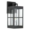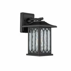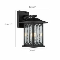 Windfall Farmhouse 1-Light Wall Lantern Sconces is a lovely fixture of traditional lanterns with a clear water glass that inspires a rustic lodge aesthetic and is hand-leaded together to give you elegance and sophistication with the emphasis on light. Made of a cast aluminum construction that is more durable and less prone to fading, add a touch of class to your outdoor space; geometric lines, proportions, matte finish, and traditional design complement many home color schemes. Exterior contemporary design Easy set up Clear glass UL Certified Durable steel construction Matte black finish Clear glass panels 7.6 in. width x 11.6 in. height Uses (1) 60-Watt medium base bulb (not included) Wet location listed Includes all mounting hardware for quick and easy installation Weather resistant for a long-lasting performance