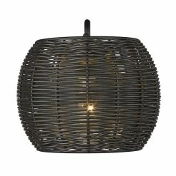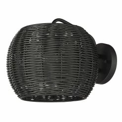 Natural materials and a dark finish make Vail a great addition to modern exteriors. Welcome guests with warmth and casual elegance. This wet-rated outdoor sconce features Black Rattan Wicker formed into a stylish drum. A circular glass shade sits behind the wicker shade encasing the lamp source. A protective UV coat ensures that the lightly textured Natural Black finish will look great for years to come. The modern look complements trending outdoor furniture options. Create the perfect outdoor space with this Contemporary fixture.