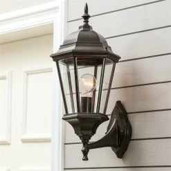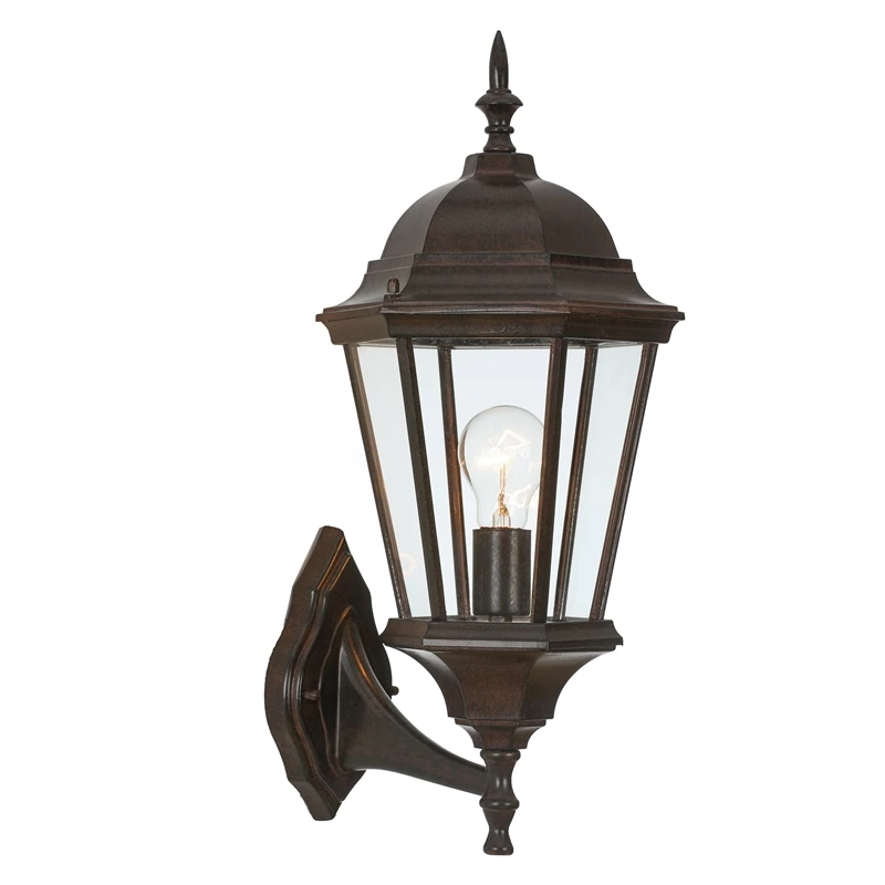 This wall lantern sconce offers a traditional style for a variety of exteriors. The sconce is powered by electricity, and requires hardwiring using the instructions provided. The aluminum frame has an aged copper finish, and the body of the lantern features a clear glass to allow for a brightly lit selected outdoor area. Add this beauty to your porch, patio, or any outdoor wall where you need extra light.