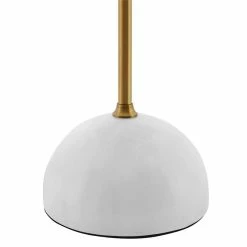 This chic, mid-century inspired Maddie Home Bubbles Table Lamp is playfully stylish for your living space, but just as suitable for your office. The round white marble base offers a striking contrast to the matte black metal shade connected by a bronze finish stem. The color-block effect makes it a great statement piece.