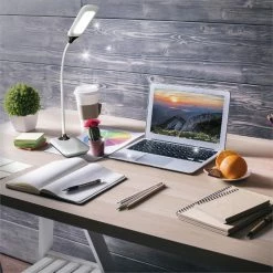 OttLite brings the eyestrain-reducing power of ClearSun® LED technology together with the patented sanitizing power of SpectraClean™ visible light disinfection to provide the ultimate healthy light.. Simply turn on the OttLite Enhance LED Desk Lamp to begin sanitizing your space against potentially harmful bacteria, and mold. This flexible lamp adjusts from 8.5 to 14 inches and features a USB charging port to keep your devices charged.