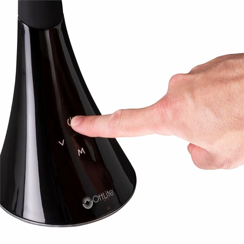 The OttLite Swerve LED Desk Lamp is a great touch lamp for a variety of uses. Exclusive ClearSun LED technology optimizes illumination while helping reduce eyestrain by 51%. Easily adjust the 4 brightness settings with touch-sensitive control and the three color modes with touch-activated controls enable easy adjustments to meet your needs. With a flexible neck that extends 20”, it easily adjusts the light angle over all your projects. Versatile illumination makes it perfect for everyday tasks.