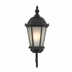 The Brielle by Yosemite Home Decor puts an elegant twist on a traditional design. The energy efficient fluorescent bulb is surrounded by beautiful frosted glass, allowing the fixture to illuminate your walkway. Its black frame curls underneath the light fixture, providing not only support but a decorative addition to this piece. The base edges of the piece are intricately decorated to add a dash of sophistication.